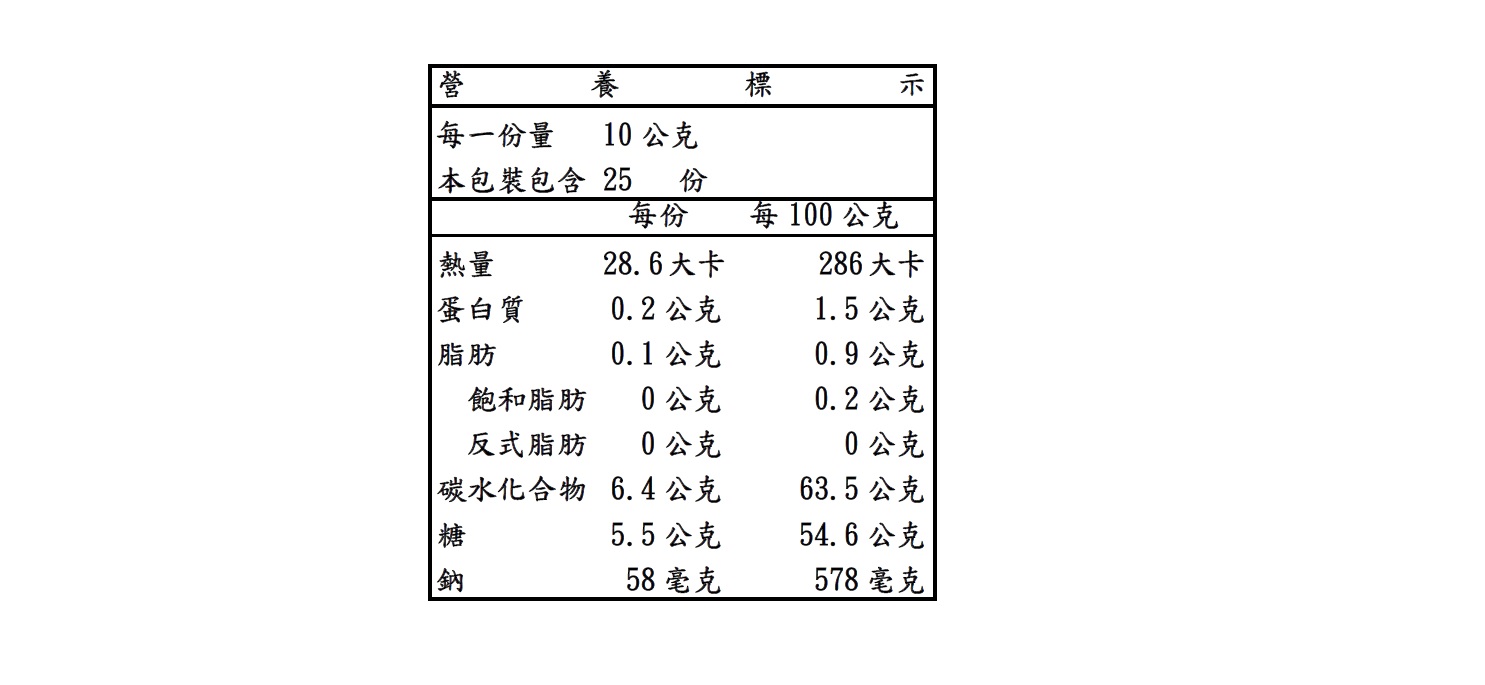 食品添加物:紐甜(甜味劑)、乙基麥芽醇(香料)、綠茶香料、苯甲酸(防腐劑)