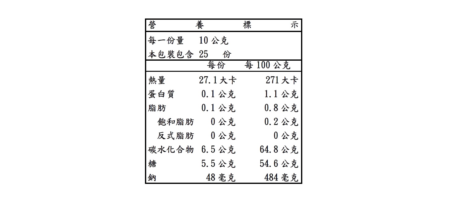 食品添加物:紐甜(甜味劑)、乙基麥芽醇(香料)、咖啡香料、苯甲酸(防腐劑)