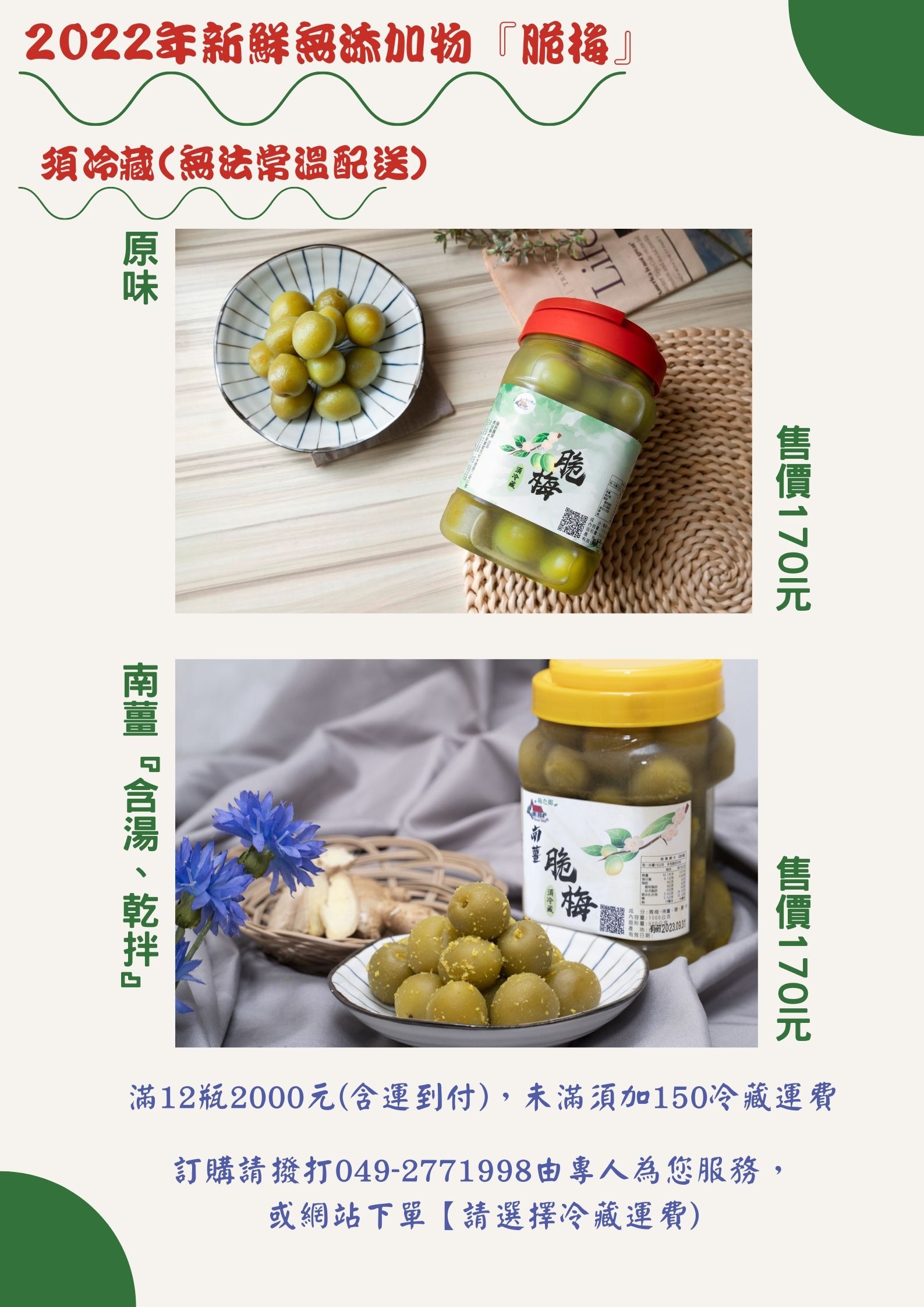 2022年新鮮無添加物﹝脆梅﹞上市『須冷藏』