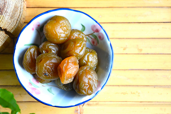 烏龍茶梅,伴著烏龍茶葉一起醃製,讓茶香完全滲透進梅子裡,連梅核都滲有淡淡茶香,口感Q彈不會太甜。